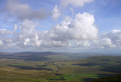 cumulus clouds in blue sky, seen from Whernside summit